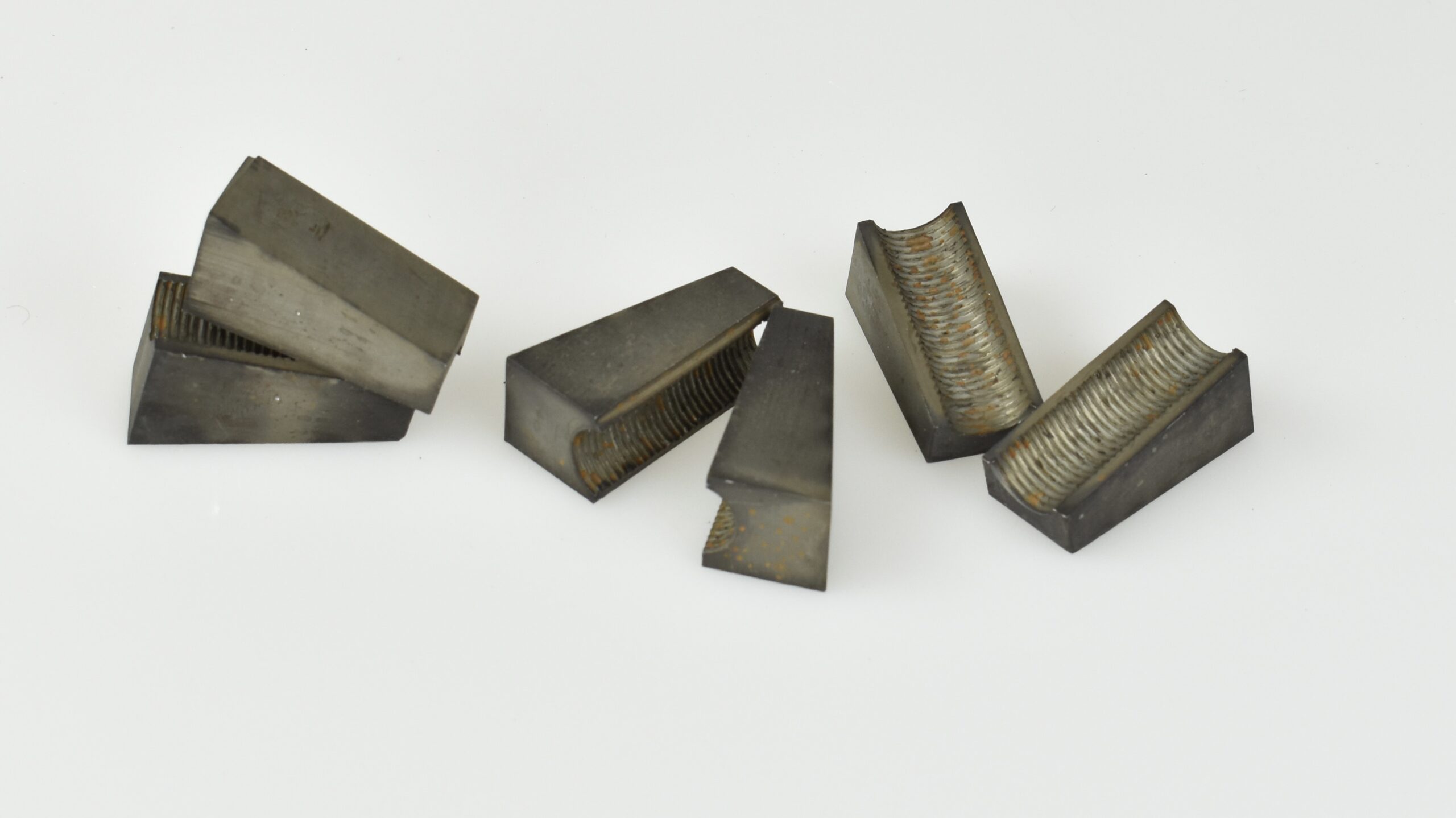 Our new Patent Pending troubleshooting anchor is revolutionizing the repair of bundled tendons. The Flat Wedge Lock-Off anchor uses our proprietary 5/8” wide flat wedges, rather than traditional 1” diameter round wedges. This permits the anchor to secure bundled cables that are literally touching each other, and like our existing multi-cable lock-offs, these anchors can be stacked on top of each other. The case-hardened wedges give a tenacious grip on the cable and have proven highly durable for repeated use. The anchor is available for use on only ½” cable. Each anchor is sold with 3 sets of wedges. Additional wedges can be purchased separately FW1 Flat Wedges. Also available in 3 cable configuration.